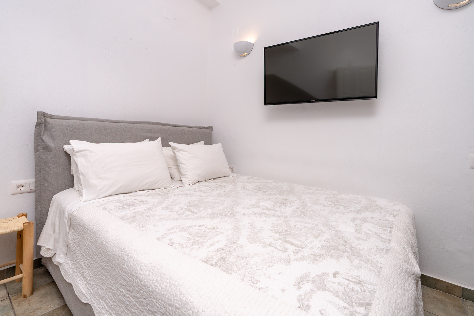 PENSION AKROGIALI offer triple studio that offer our guests a comfortable stay. They are all spacious and furnished with simplicity and elegance. They have a double iron bed and one single bed and all the necessary decorative elements that create a relaxing atmosphere.